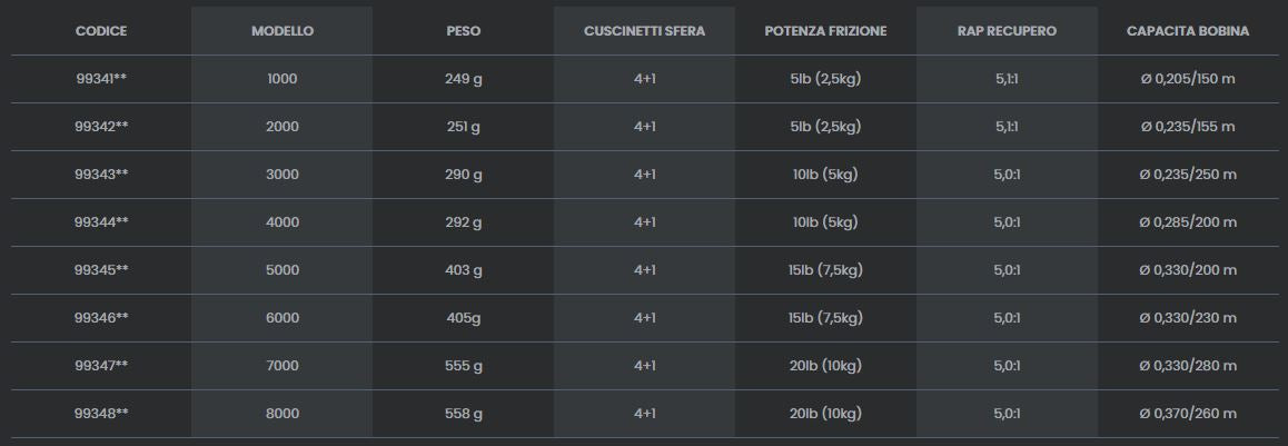 Questa serie di mulinelli rappresenta la scelta migliore in funzione del rapporto tra qualità e prezzo per i pescatori che necessitano di un mulinello affidabile per la pesca in acqua dolce ed in mare. La serie comprende ben otto misure per soddisfare i più svariati tipi di pesca.